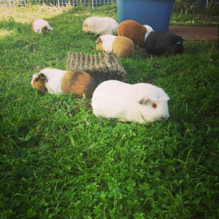 Guinea pigs and rabbits LOVE our outdoor play area. We have created a safe and secure pen which encompasses the